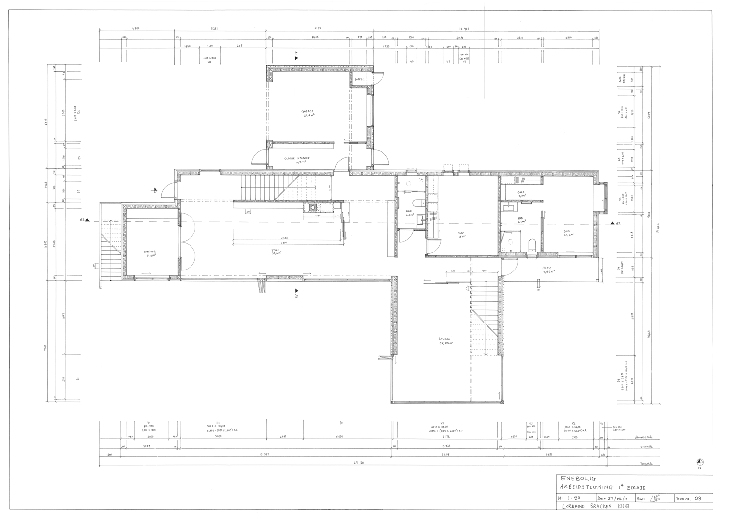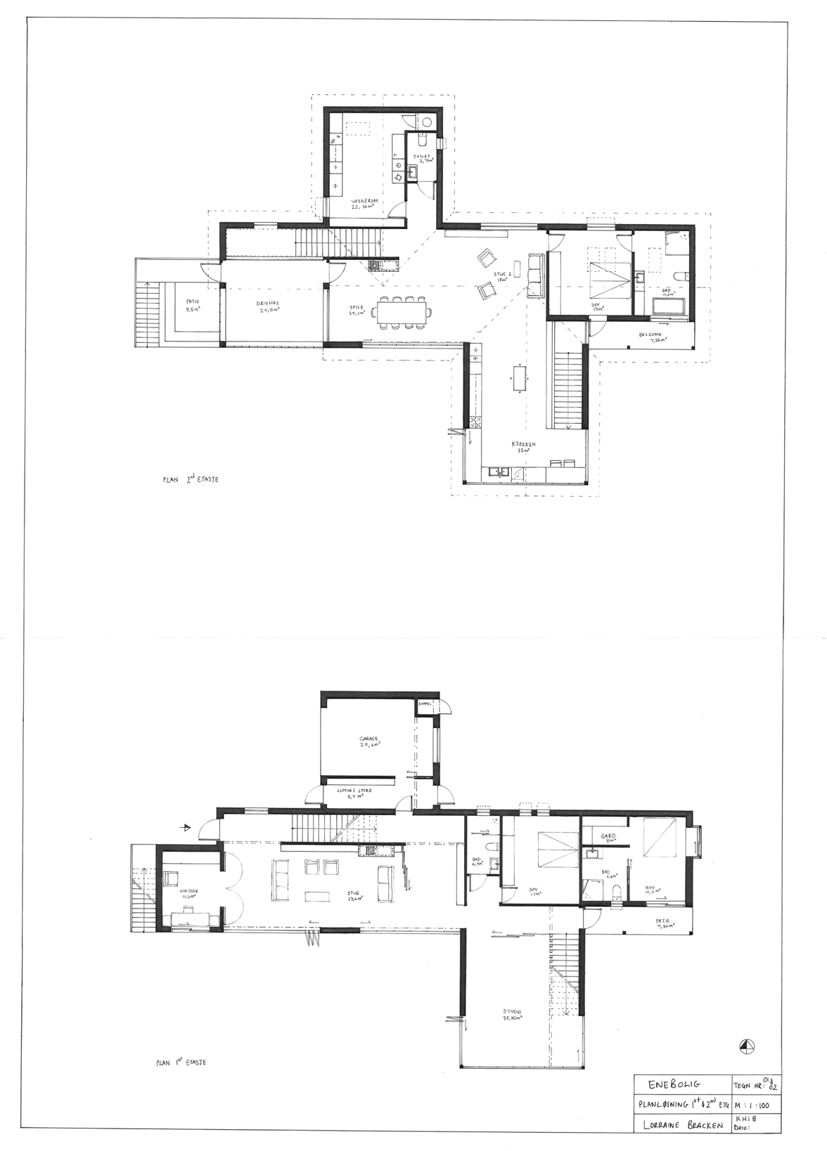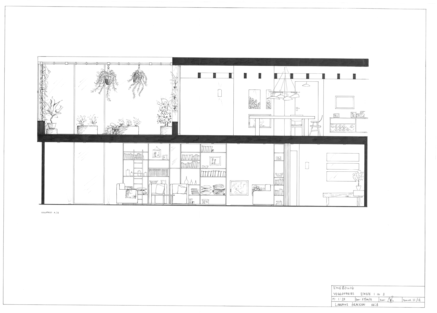 Furniture plans 1:100 Flooring plan 1:100 Lighting/ceiling plan 1:50 Elevation 1:20Sections 1:100