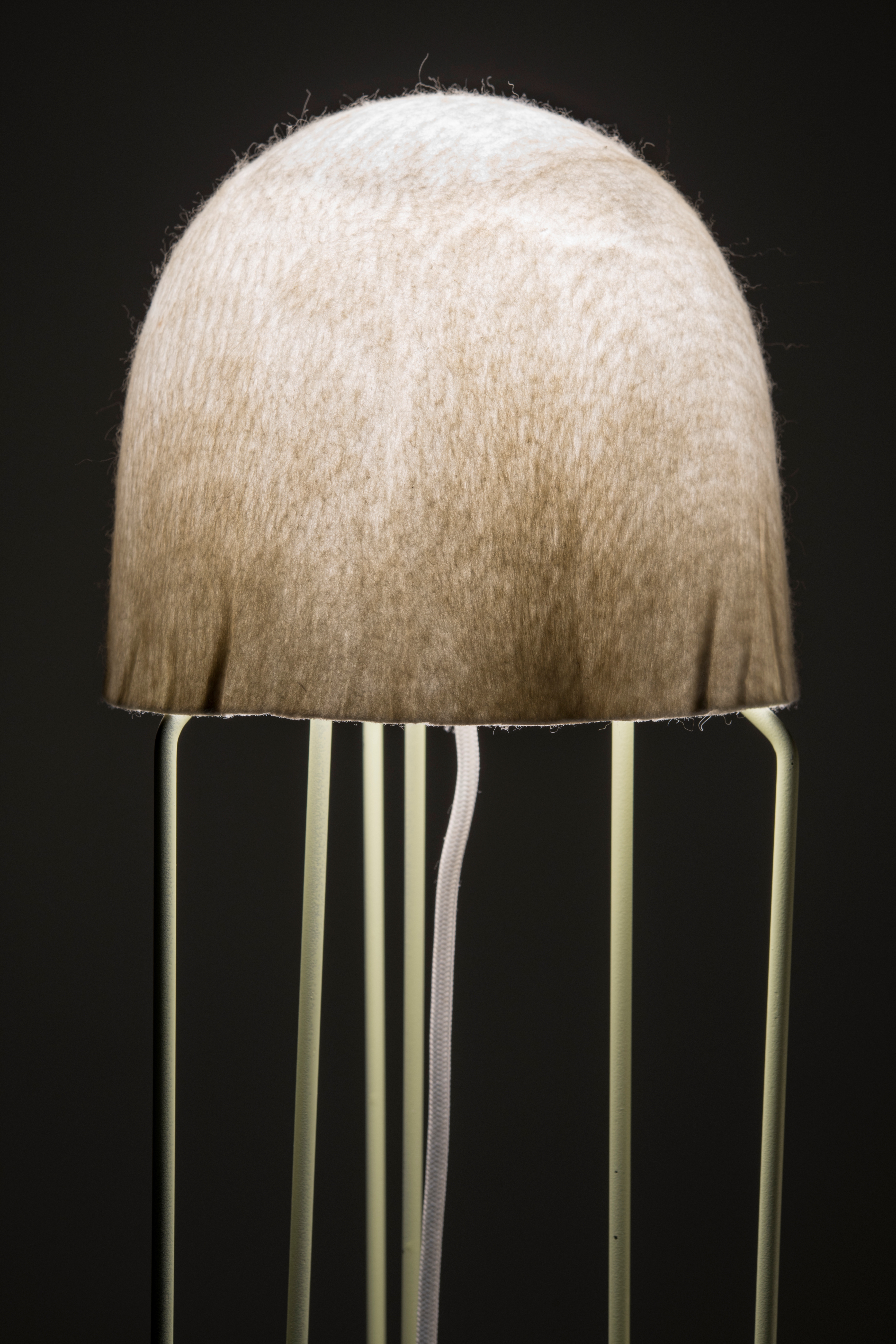 These prototypes were hand-made at the academy workshops. Materials are PET felt, 6mm diameter steel rod legs, textile cord and LED bulbs. Exact dimensions and sizes are available on request.